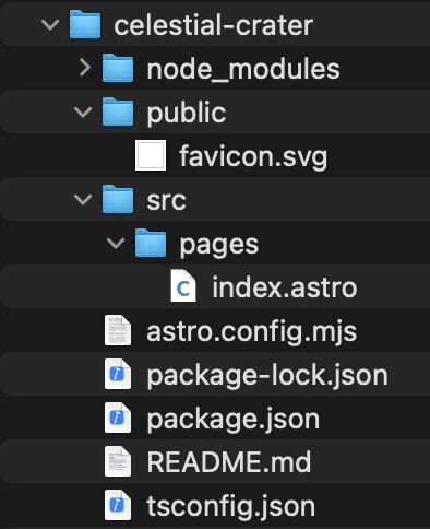 pm install --save-dev --save-exact prettier prettier-plugin-astro - プロジェクトルートに、”.prettierrc”ファイルを作成して、ファイルを開いて次の記述をする。
