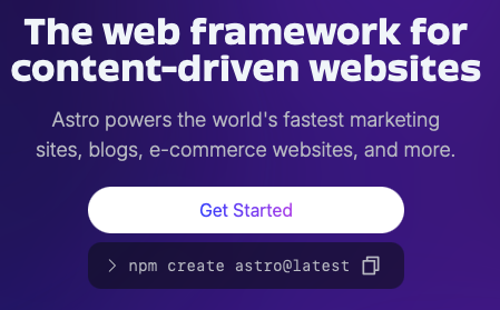 - Astroの公式のトップページに記載のプロジェクト作成コマンドをコピーし、ターミナルでプロジェクトを作成するフォルダに移動して、コマンドを実行する。