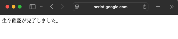 return HtmlService.createHtmlOutput("生存確認が完了しました。");
