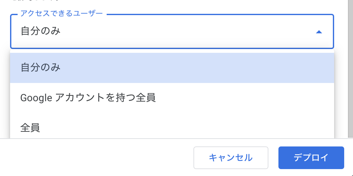 アクセスできるユーザーは、生存確認を行うのが自分だけなので、”自分のみ”にして、右下のデプロイボタンをクリック。
