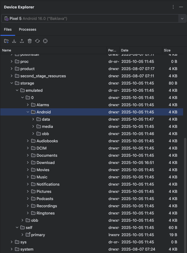 Android StudioのDevice Explorerは、標準で使える機能の一つです。Android開発のプロジェクトを作成して、実機またはエミュレータを接続している状態であれば、Androidデバイスのフォルダやファイルを確認することができ、ファイル交換や削除などを行うことができます。