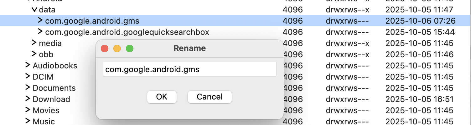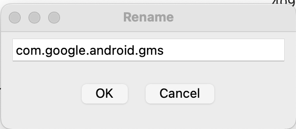 adb -s <デバイスID> shell mv <src> <dst> 名前変更を実行する前には、変更する名前を設定するダイアログが表示されます。名前を変更してOKを押すことで、mvコマンドが実行されますが、キャンセルや無変更でOKを押した場合は何も実行されないようになっています。