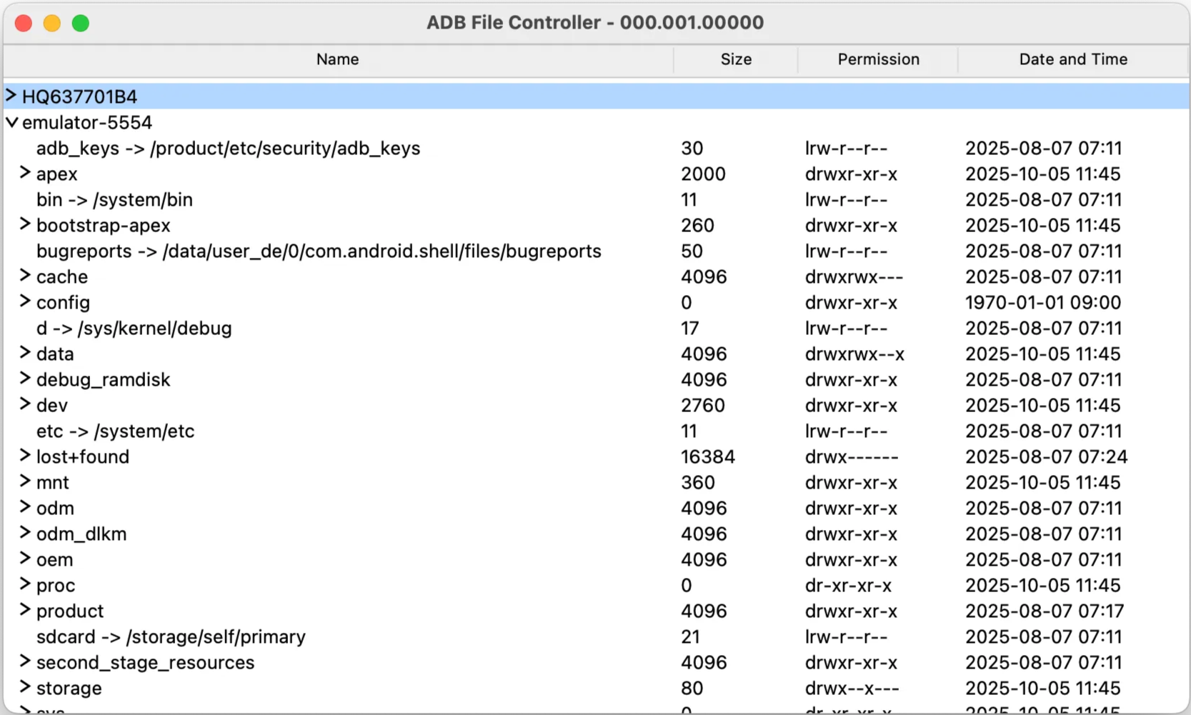 ファイル交換を目的として余計な機能をつけず、誰でも簡単に使い始められることを目指しました。画面に表示されるのは、ディレクトリツリー構造と、ファイルサイズ、パーミッション、作成日時だけです。これらの表示は、Device Explorerに合わせています。
